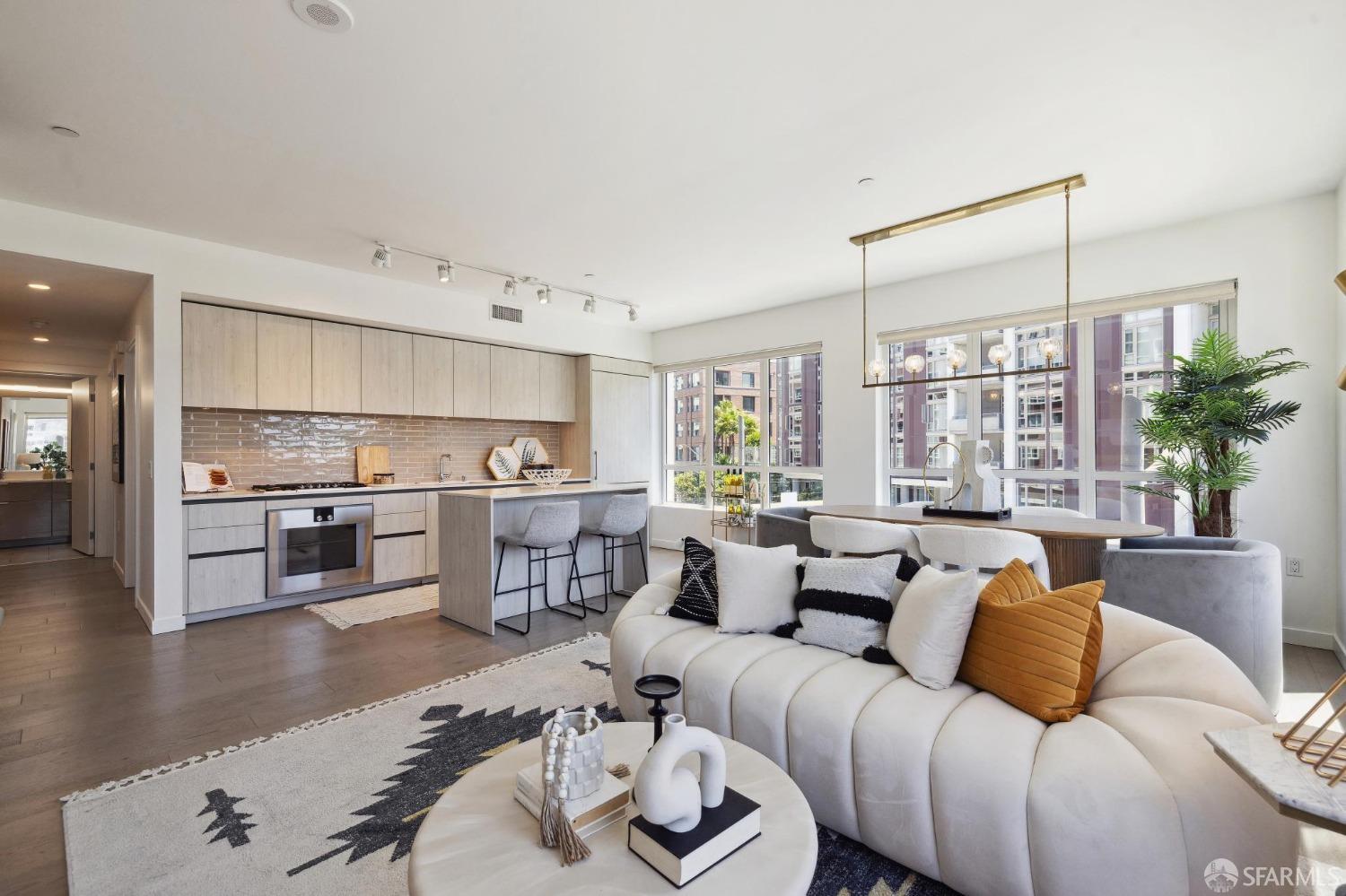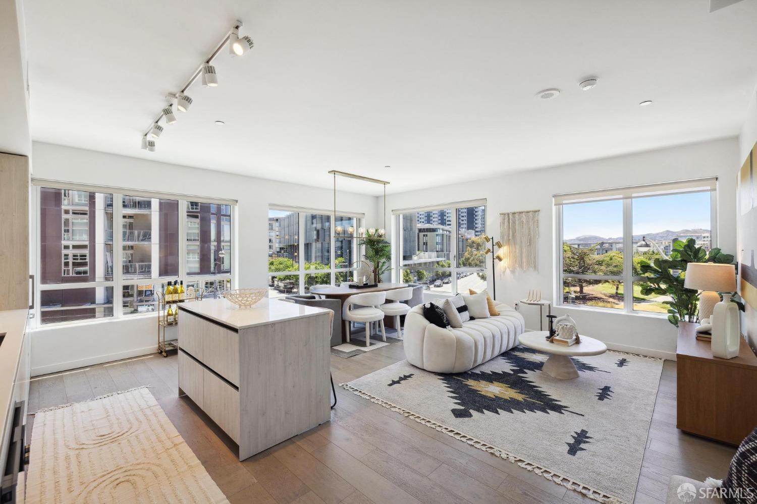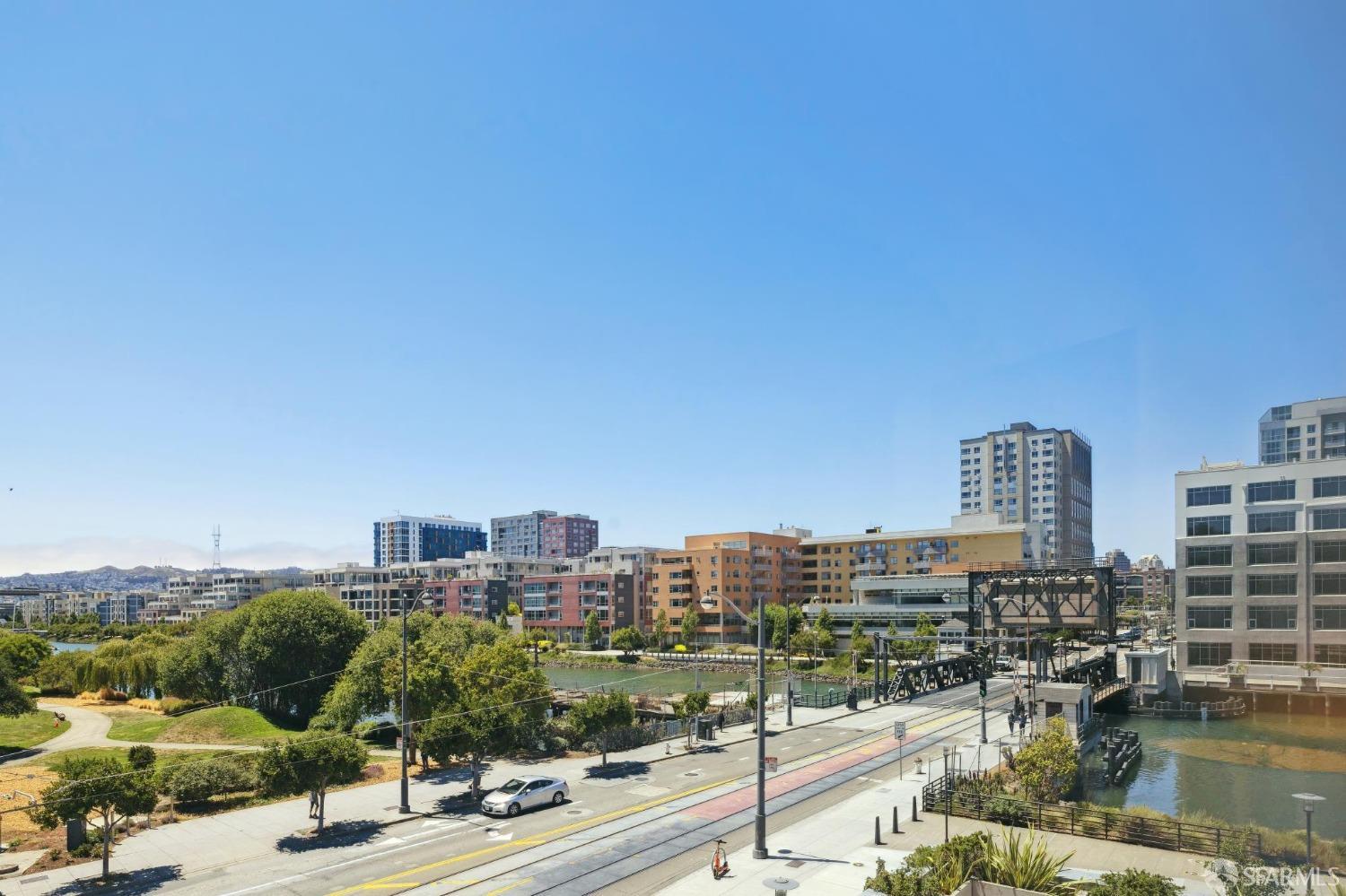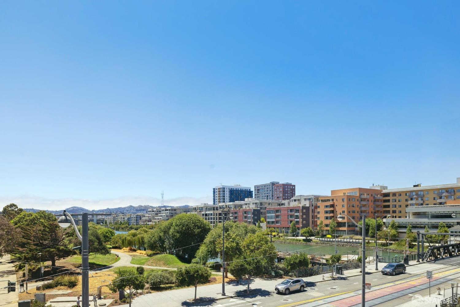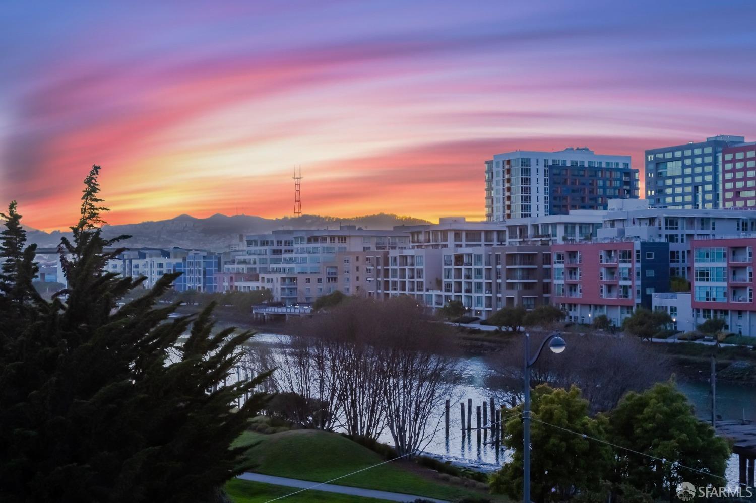 Discover breathtaking sunsets from this rare, pristine 3 bed 2 bath corner home boasting exceptional views of Mission Creek, Twin Peaks, and Sutro Tower. Southwest exposure floods the space with natural light year-round. The galley kitchen features a movable island, abundant storage, 5-burner gas stove, and luxury appliances cleverly integrated into the cabinetry. Motorized blinds, custom closets, Nest thermostat, and in-unit washer dryer enhance convenience. Enjoy 1 car parking in this chic abode at One Mission Bay, offering luxury amenities like a 24-hour doorperson, heated outdoor pool, dining and lounge areas, fitness center, business center, and a guest suite. Welcome to San Francisco living at its finest!