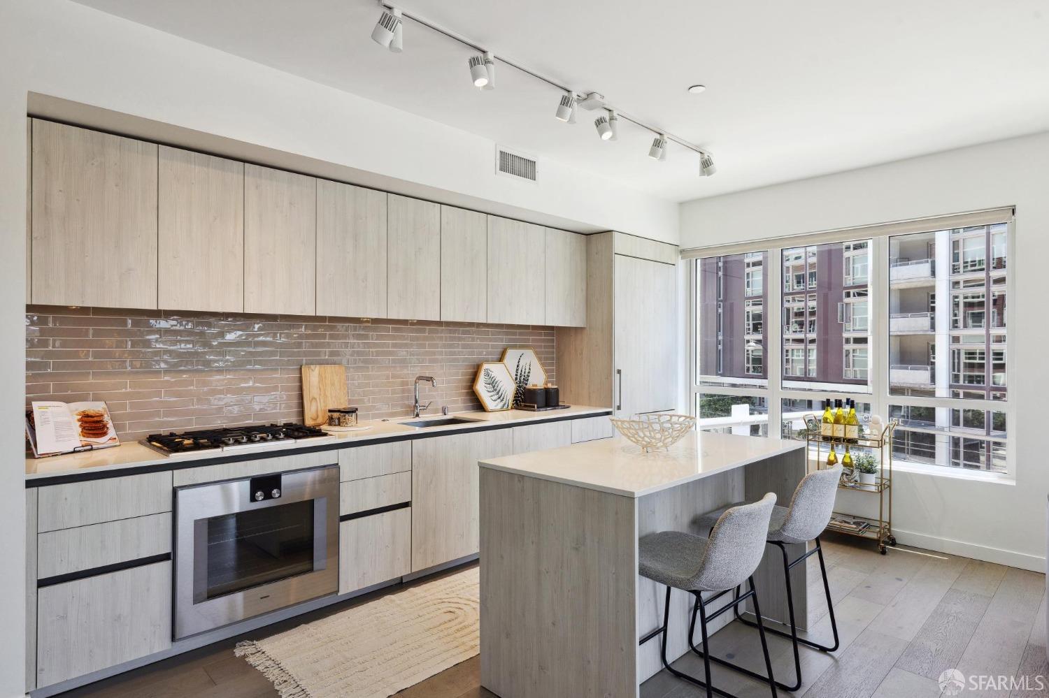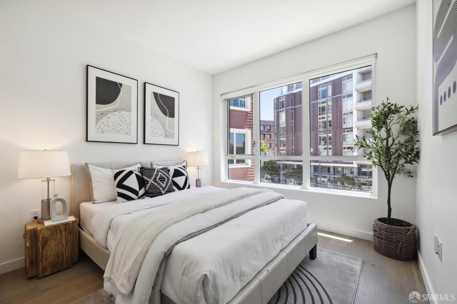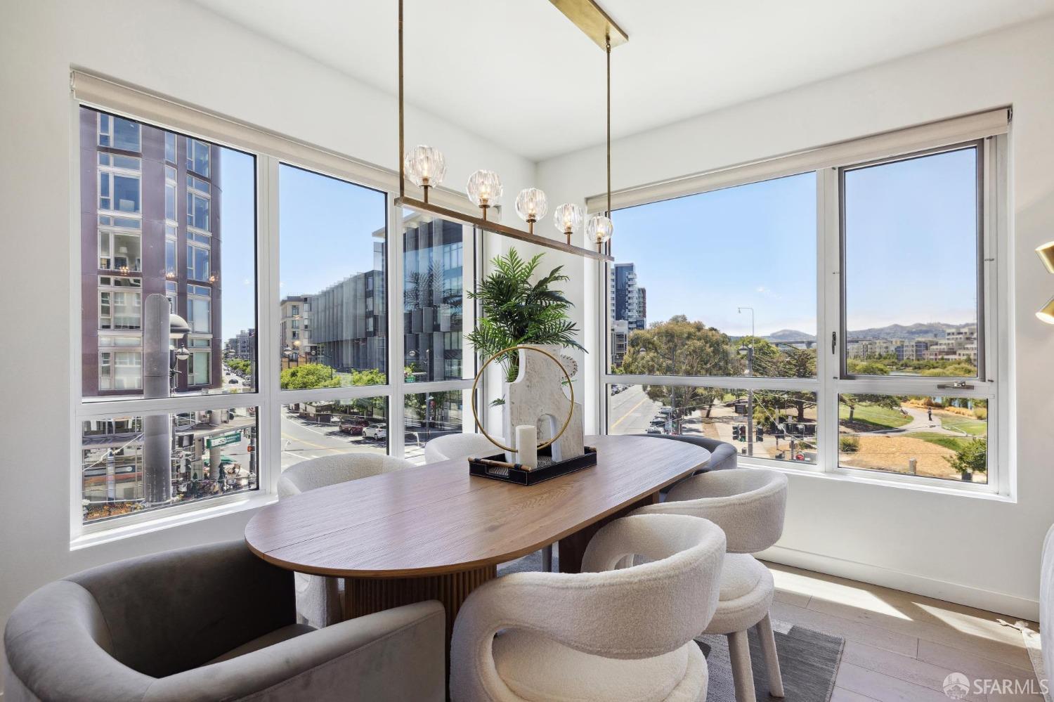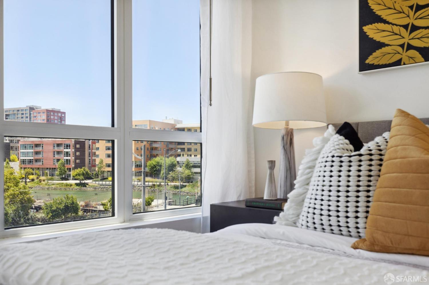 Discover breathtaking sunsets from this rare, pristine 3 bed 2 bath corner home boasting exceptional views of Mission Creek, Twin Peaks, and Sutro Tower. Southwest exposure floods the space with natural light year-round. The galley kitchen features a movable island, abundant storage, 5-burner gas stove, and luxury appliances cleverly integrated into the cabinetry. Motorized blinds, custom closets, Nest thermostat, and in-unit washer dryer enhance convenience. Enjoy 1 car parking in this chic abode at One Mission Bay, offering luxury amenities like a 24-hour doorperson, heated outdoor pool, dining and lounge areas, fitness center, business center, and a guest suite. Welcome to San Francisco living at its finest!