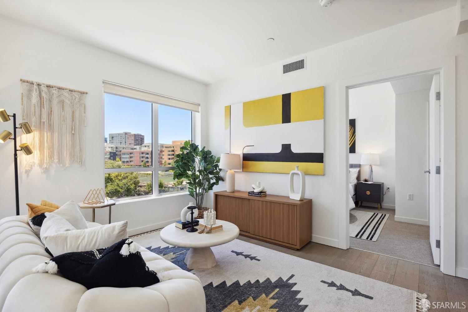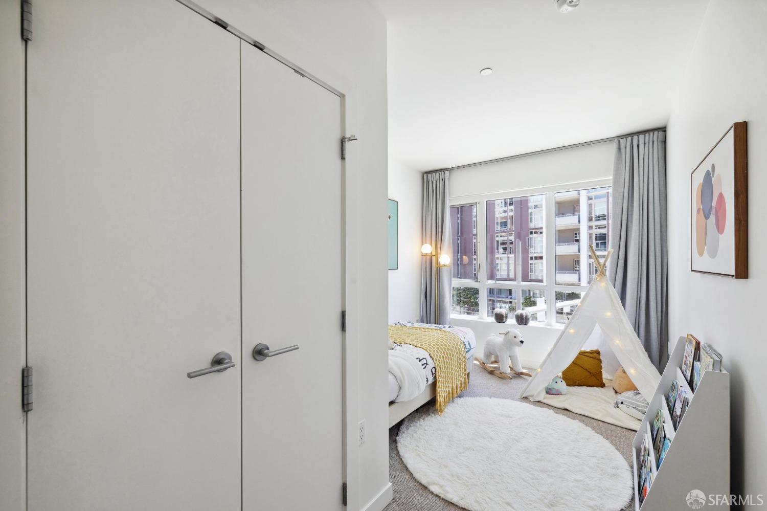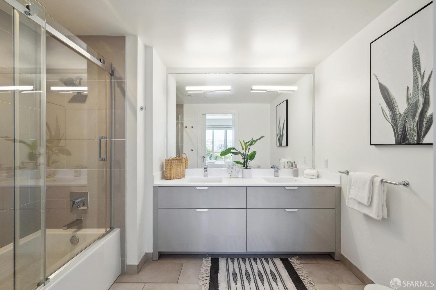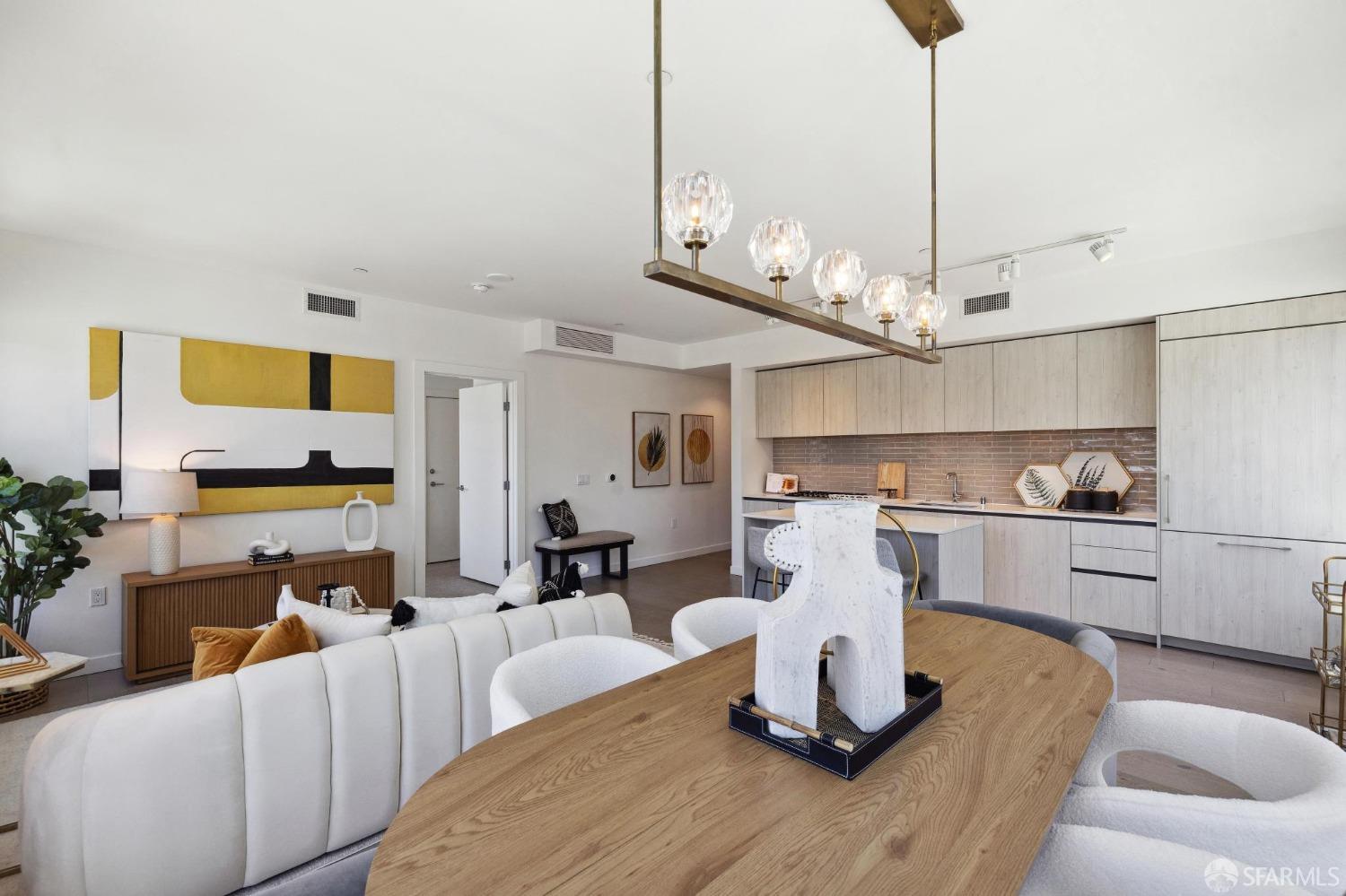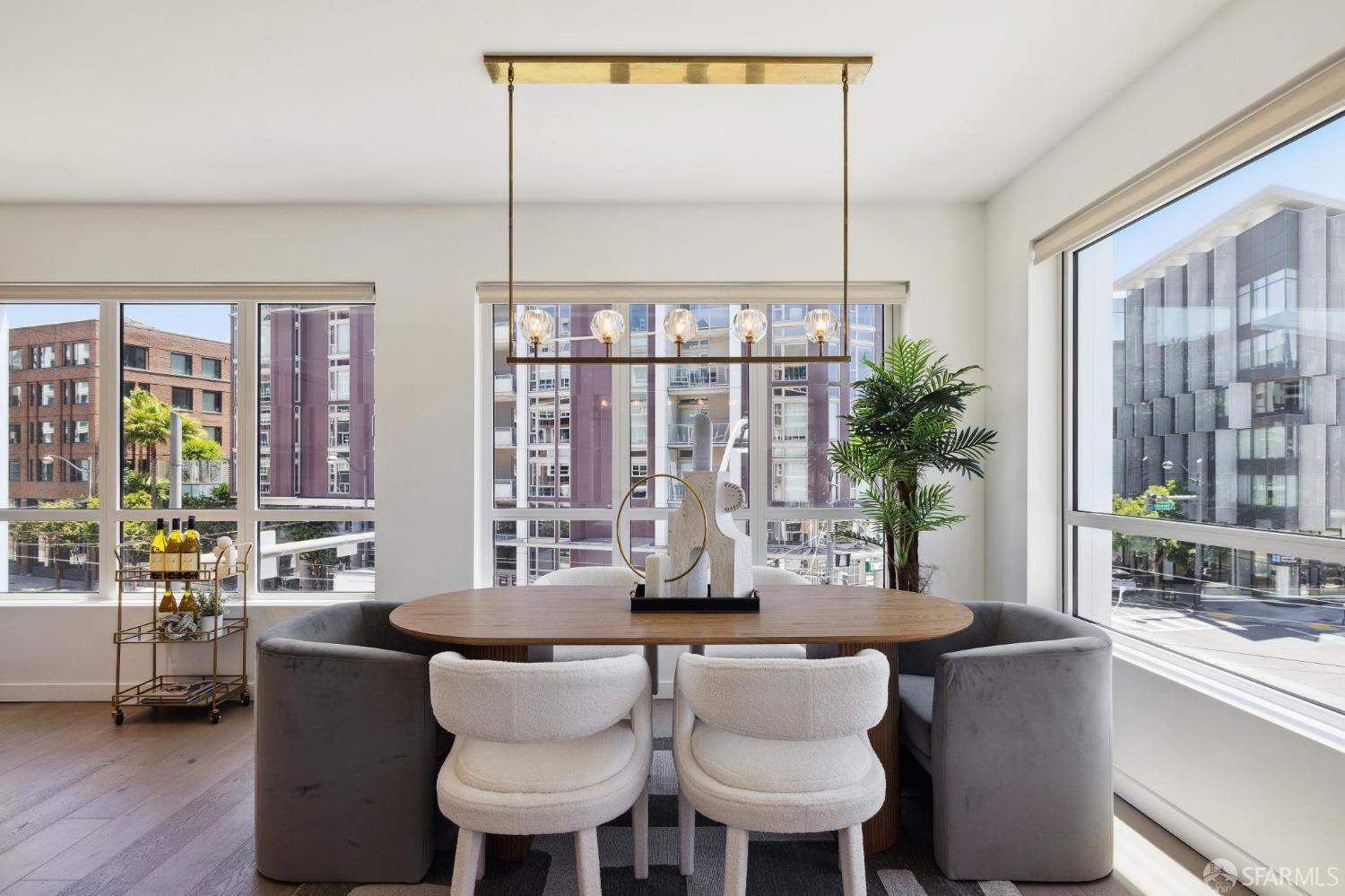 Discover breathtaking sunsets from this rare, pristine 3 bed 2 bath corner home boasting exceptional views of Mission Creek, Twin Peaks, and Sutro Tower. Southwest exposure floods the space with natural light year-round. The galley kitchen features a movable island, abundant storage, 5-burner gas stove, and luxury appliances cleverly integrated into the cabinetry. Motorized blinds, custom closets, Nest thermostat, and in-unit washer dryer enhance convenience. Enjoy 1 car parking in this chic abode at One Mission Bay, offering luxury amenities like a 24-hour doorperson, heated outdoor pool, dining and lounge areas, fitness center, business center, and a guest suite. Welcome to San Francisco living at its finest!