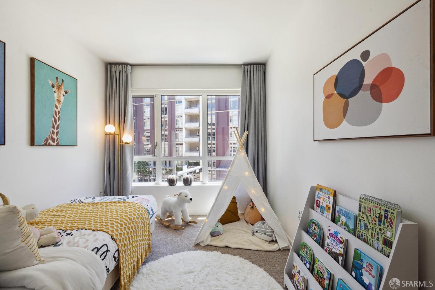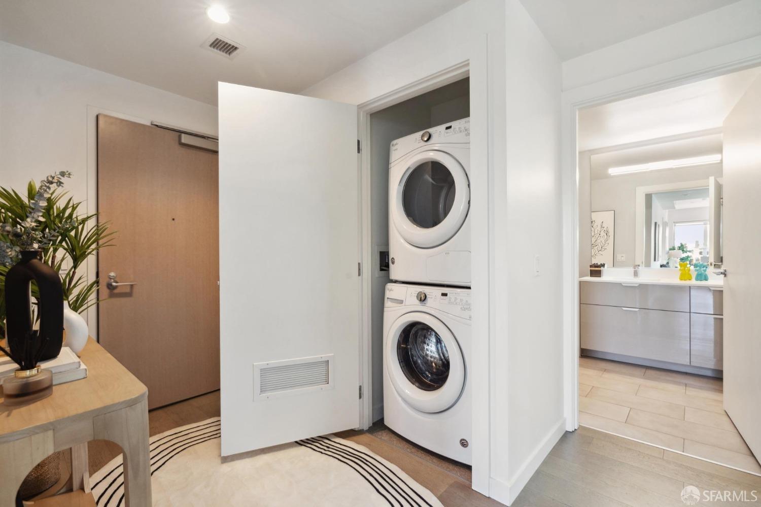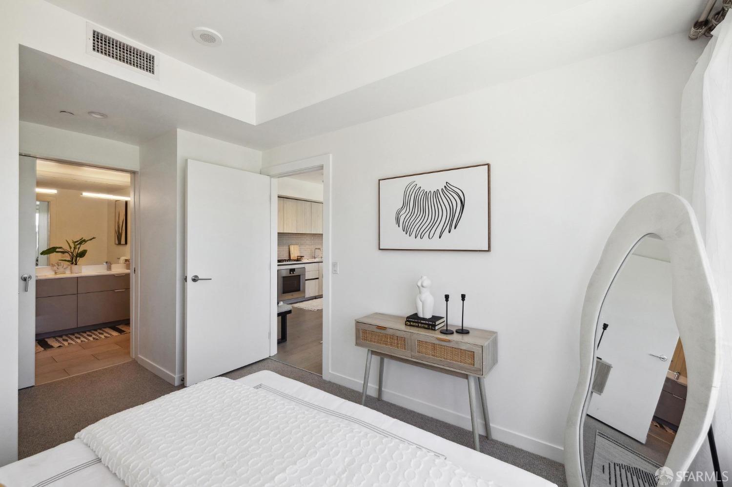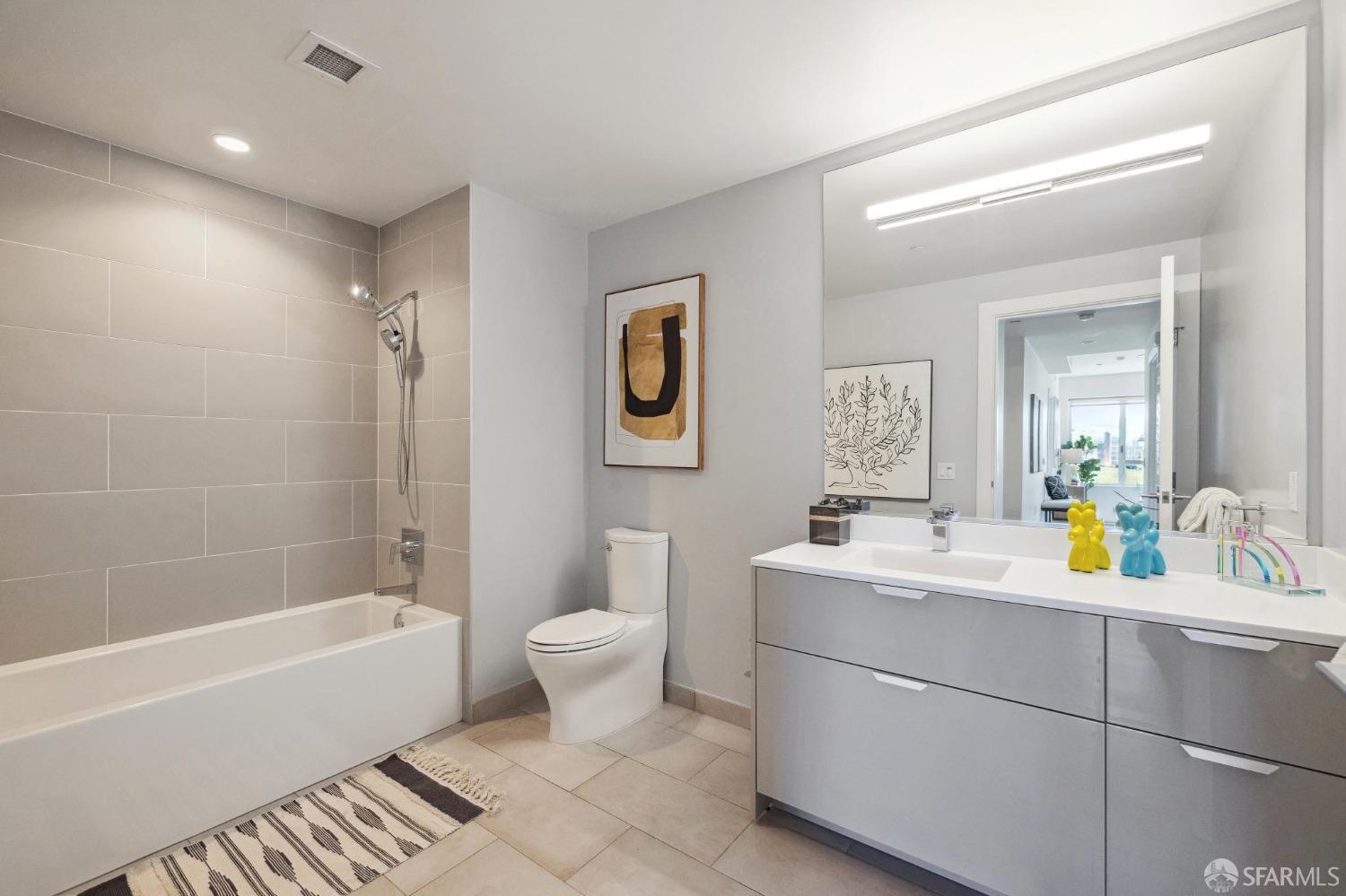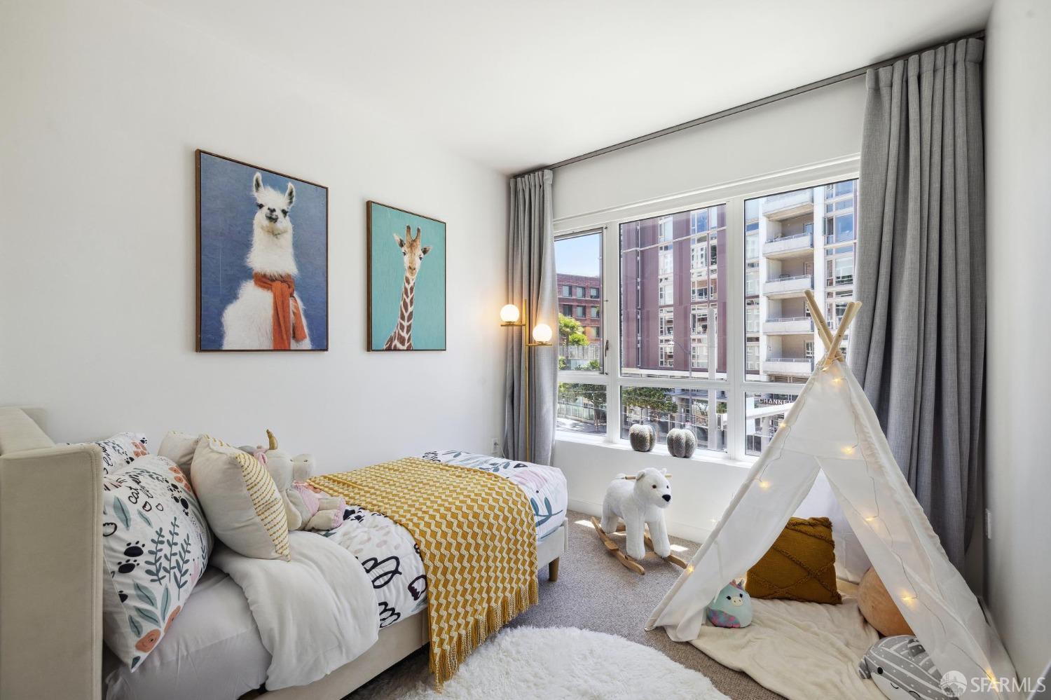 Discover breathtaking sunsets from this rare, pristine 3 bed 2 bath corner home boasting exceptional views of Mission Creek, Twin Peaks, and Sutro Tower. Southwest exposure floods the space with natural light year-round. The galley kitchen features a movable island, abundant storage, 5-burner gas stove, and luxury appliances cleverly integrated into the cabinetry. Motorized blinds, custom closets, Nest thermostat, and in-unit washer dryer enhance convenience. Enjoy 1 car parking in this chic abode at One Mission Bay, offering luxury amenities like a 24-hour doorperson, heated outdoor pool, dining and lounge areas, fitness center, business center, and a guest suite. Welcome to San Francisco living at its finest!