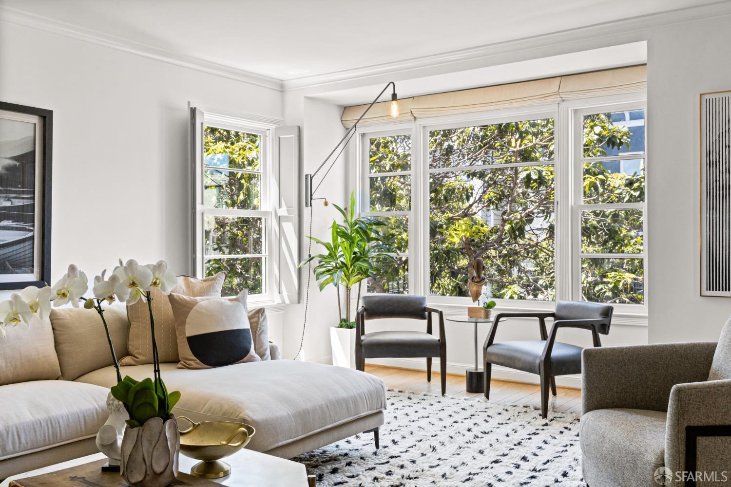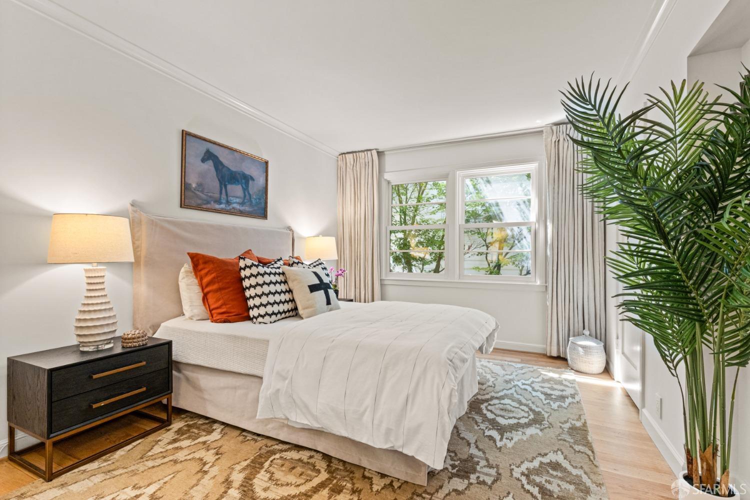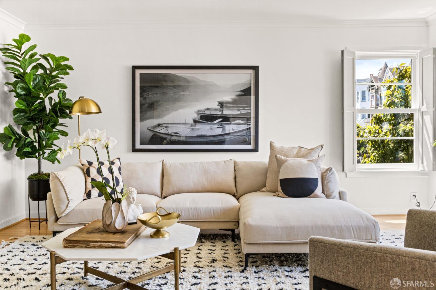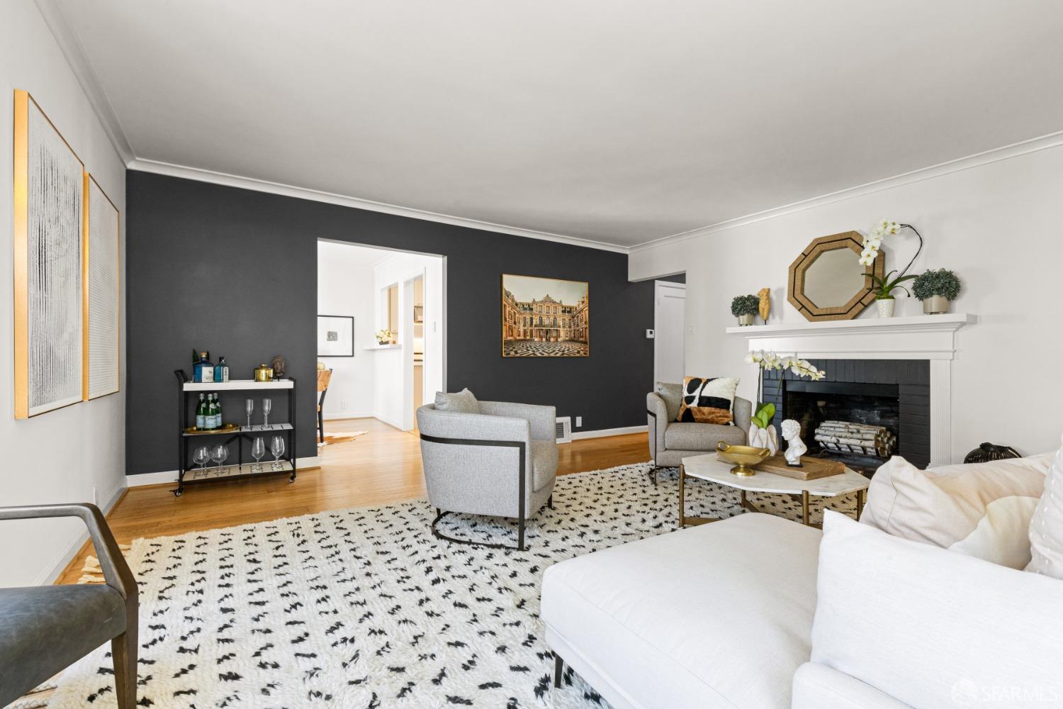 Discover your urban retreat in this rarely available house like top-floor condominium, bathed in natural light and exuding bespoke style. Located right in the center of San Francisco in the coveted Hayes Valley neighborhood, this elevated one-bedroom residence offers the perfect blend of comfortable living, period details, modern updates and functional design. Through the gate, a lush garden pathway leads you to your individual front entrance. Large windows throughout capture stunning San Francisco neighborhood Victorian vistas. The expansive living room with wood burning fireplace flows seamlessly into the dining room and adjacent remodeled well appointed kitchen. A spacious peaceful bedroom offers a serene retreat. Adding to the exceptional value of this home is a highly sought-after one-car independent garage, a cheerful office area and updated bathroom, private area for a grill off of your kitchen, and a common patio. Additionally, a very large dedicated storage area provides ample space for your belongings. This ideally situated condo is in a well maintained 6 unit HOA with low dues of $650.00. 126 Scott offers the convenience of the vibrant Haight and Divisadero street dining/shops, transportation,Tech shuttles, and spectacular Duboce Park within blocks.