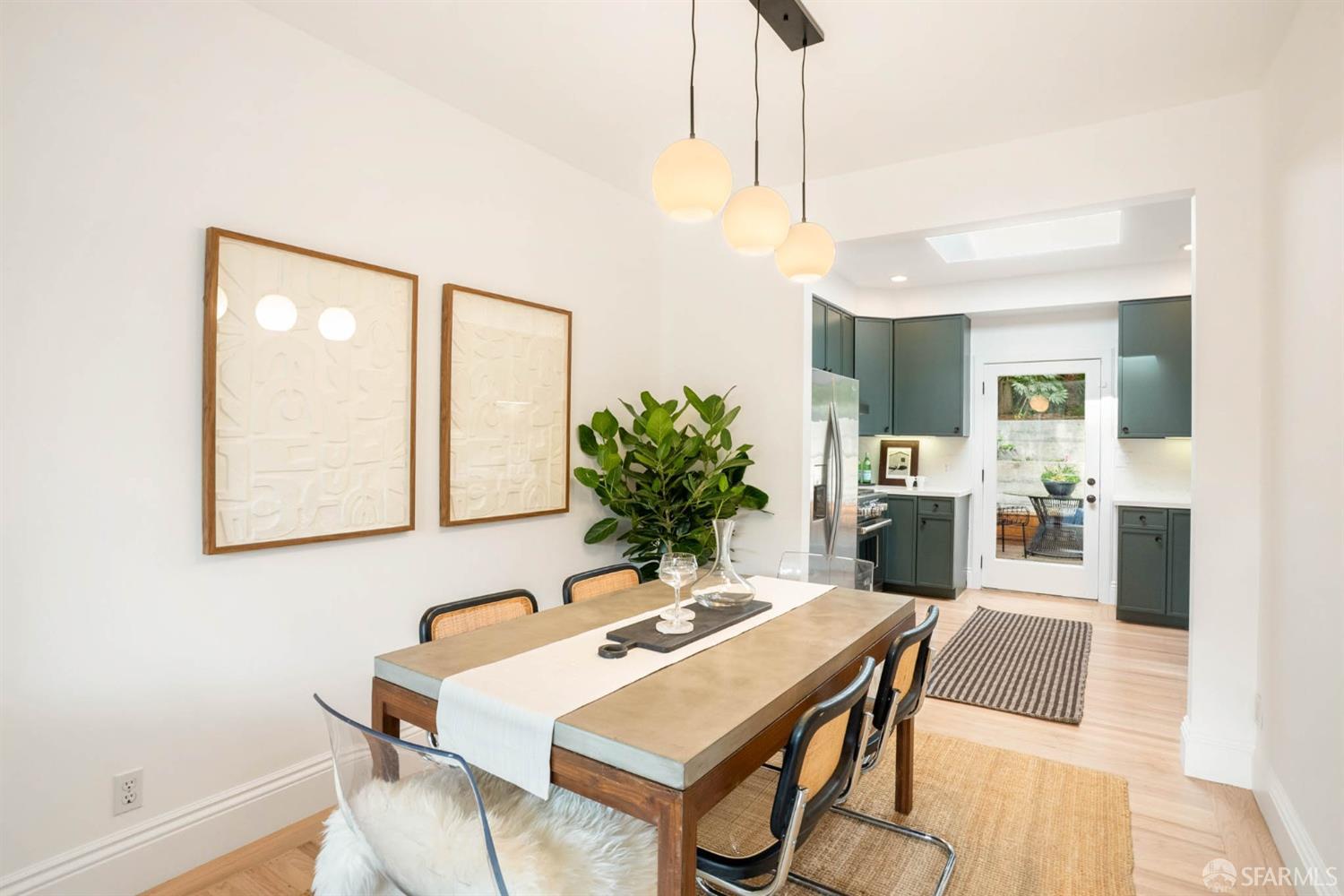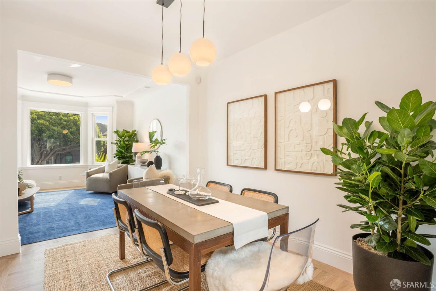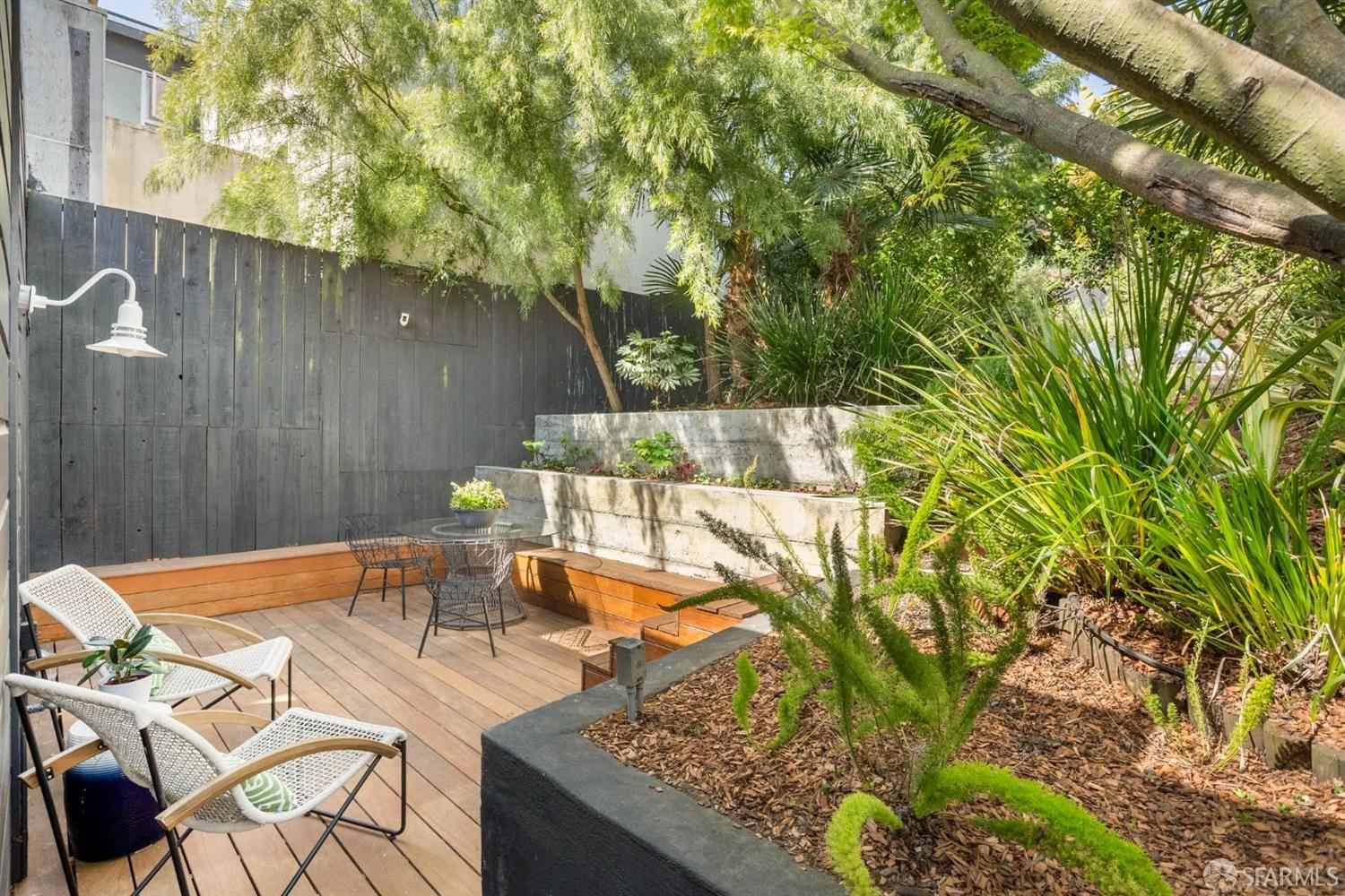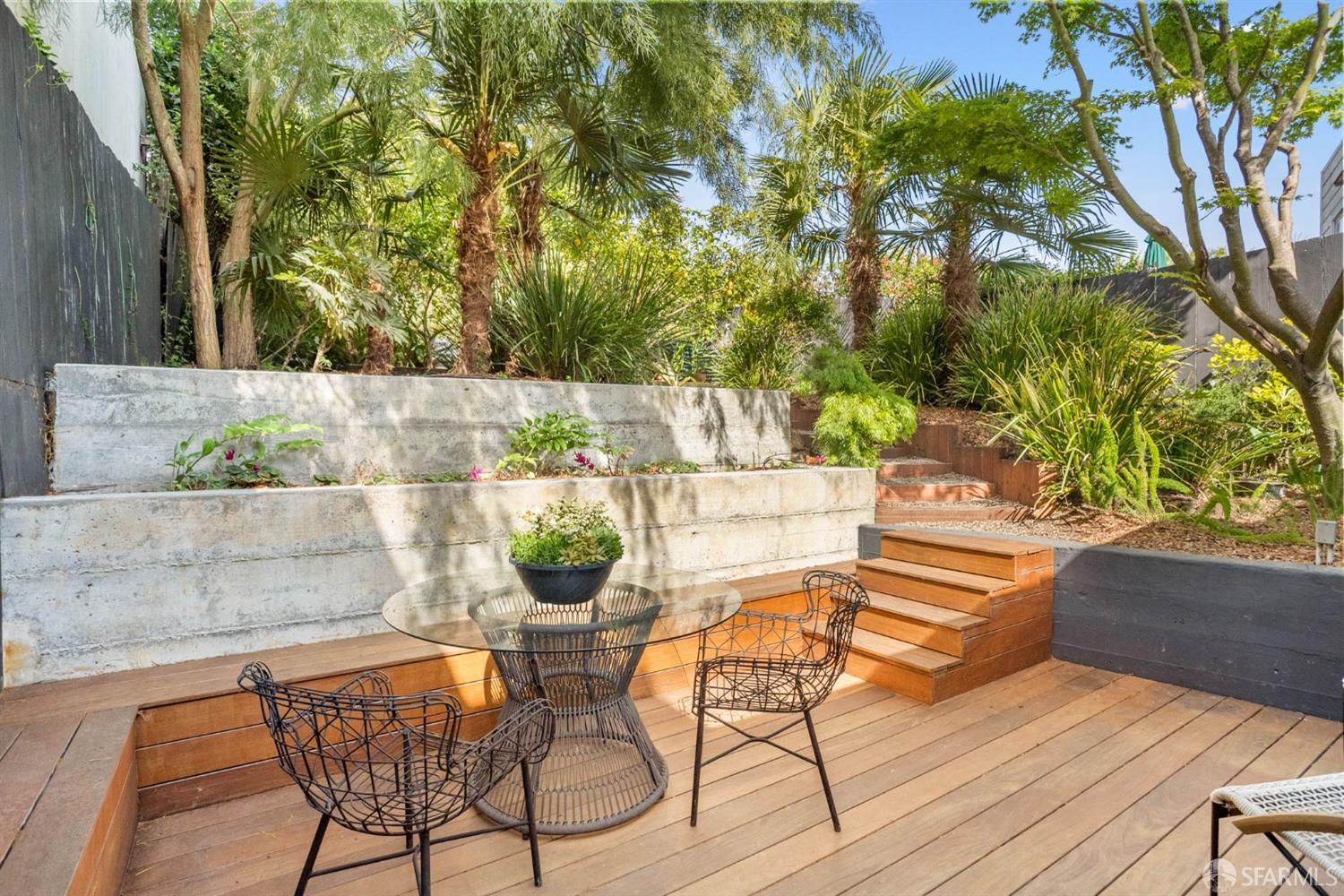 Welcome to this charming, renovated home with a desirable open floor plan and architectural detail throughout. The extra-wide living room features double-paned bay windows that provide abundant natural light, and the dining space flows seamlessly into the beautifully updated kitchen with skylight, Wolf range, and refaced cabinetry that walks out to the astounding, enormous, and multiple-level oasis garden. The garden has various seating areas encircled by mature succulents, fruit-bearing trees, and exquisite, lush greenery. The primary suite, with/ a renovated spa-like bath, is spacious, private, and wildly tranquil & also walks out directly to the garden. Oversized second bedroom overlooks palm-tree lined Dolores Street. 2 car side-by-side garage with laundry and storage complete the home. Located on a 2,672 sq ft deep lot with expansion potential. Sweet spot between Bernal & Glen Park & Noe Valley - 1 block to Church St, Mission St & Cortland Ave. Near 280 & 101, Muni, shuttle stops. A must see!